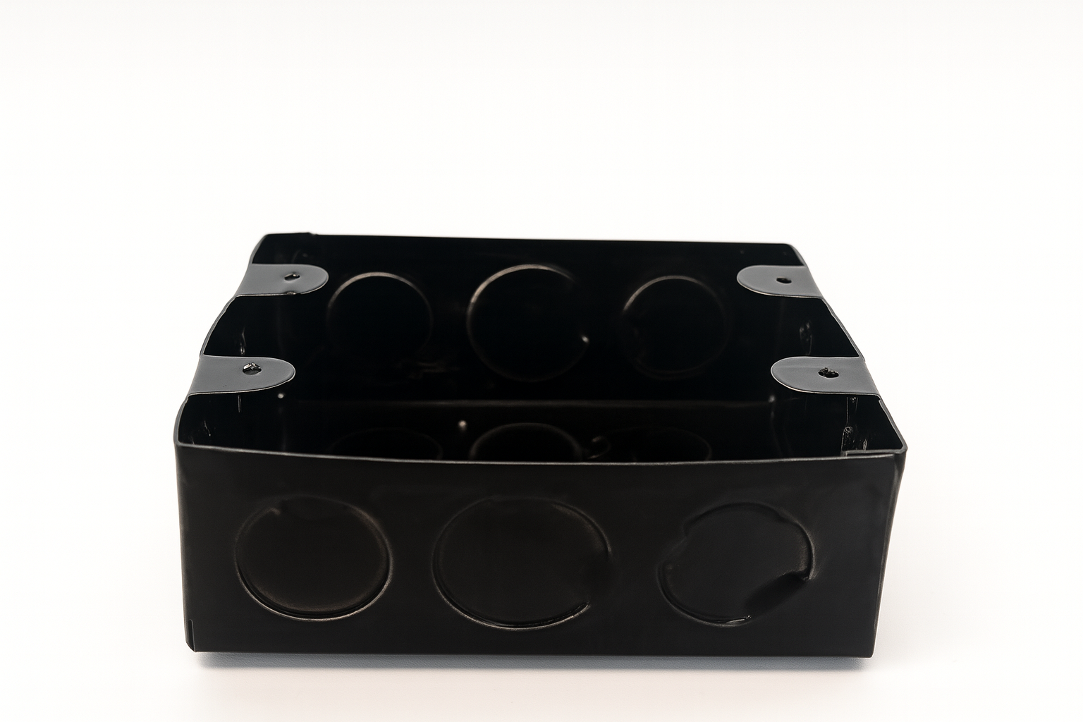 | Caixa de Luz 4×2 | 2149 | Aço 1020 · Pintura esmalte preta | 100 mm × 55 mm × 45 mm |