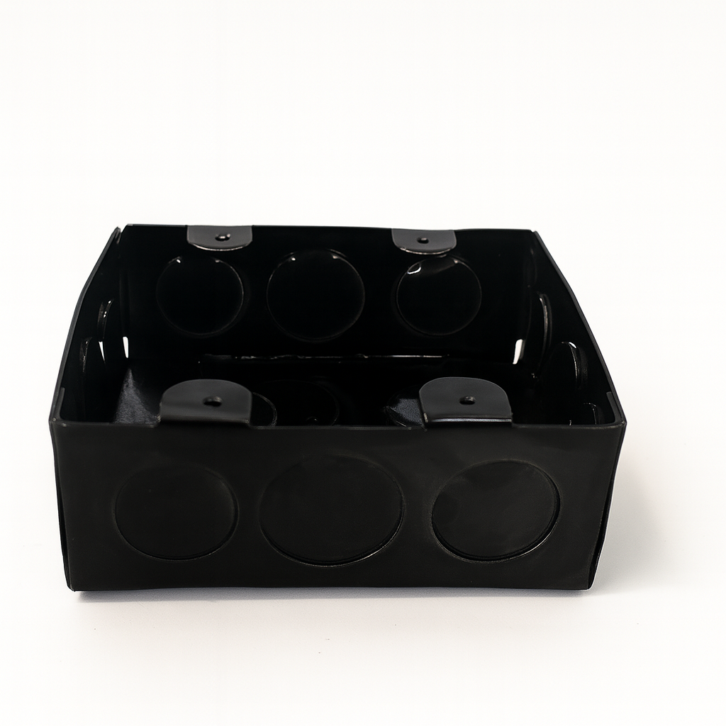 As Caixas de Luz em aço carbono 1020 foram projetadas para embutir e proteger conexões, tomadas, interruptores e derivações. Com opções de pintura esmalte preta (acabamento visual uniforme) ou galvanizado (proteção anticorrosiva), atendem às principais necessidades de obras e reformas, garantindo robustez, praticidade e padronização em instalações elétricas aparentes ou embutidas.