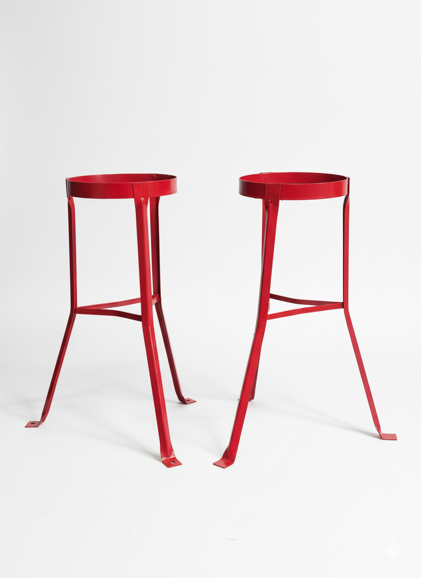 Os Suportes de Piso para Extintores foram desenvolvidos para acomodar extintores de incêndio com segurança em locais onde não é possível ou desejável a fixação em parede. Construídos em aço carbono 1020 com espessura de 1,5 mm e acabamento em pintura (vermelha ou preta), proporcionam estabilidade, durabilidade e discrição visual, mantendo o equipamento firme e acessível em ambientes industriais, comerciais e residenciais. As versões pequena (412 × 170 mm) e grande (412 × 200 mm) atendem diferentes tamanhos de extintores, otimizando o espaço sem comprometer a segurança.